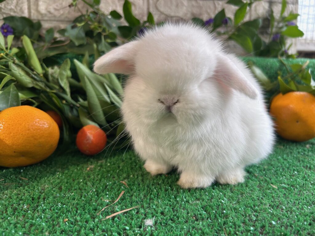 Stupendo cucciolo minilop bianco dagli occhi azzurri